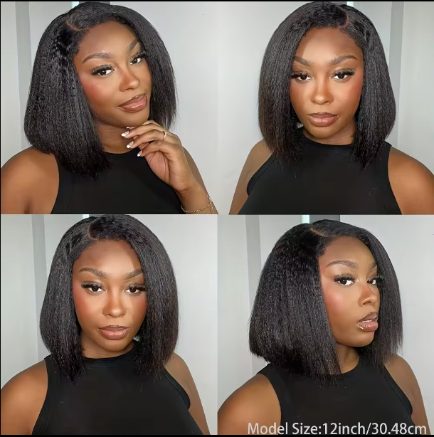 250% Density Short Bob Wig Kinky Straight Lace Front Yaki Straight Human Hair "The Human Hair Lace Wigs 13x4, 250 Density is perfect for those looking for a fuller and more natural hair look. With an incredible 250% density, this wig provides unparalleled volume and thickness. Made from high-quality human hair, it ensures a realistic and flawless appearance, while also being easy to style and maintain. Whether you're looking to add length or volume to your hair, this wig is the perfect choice."